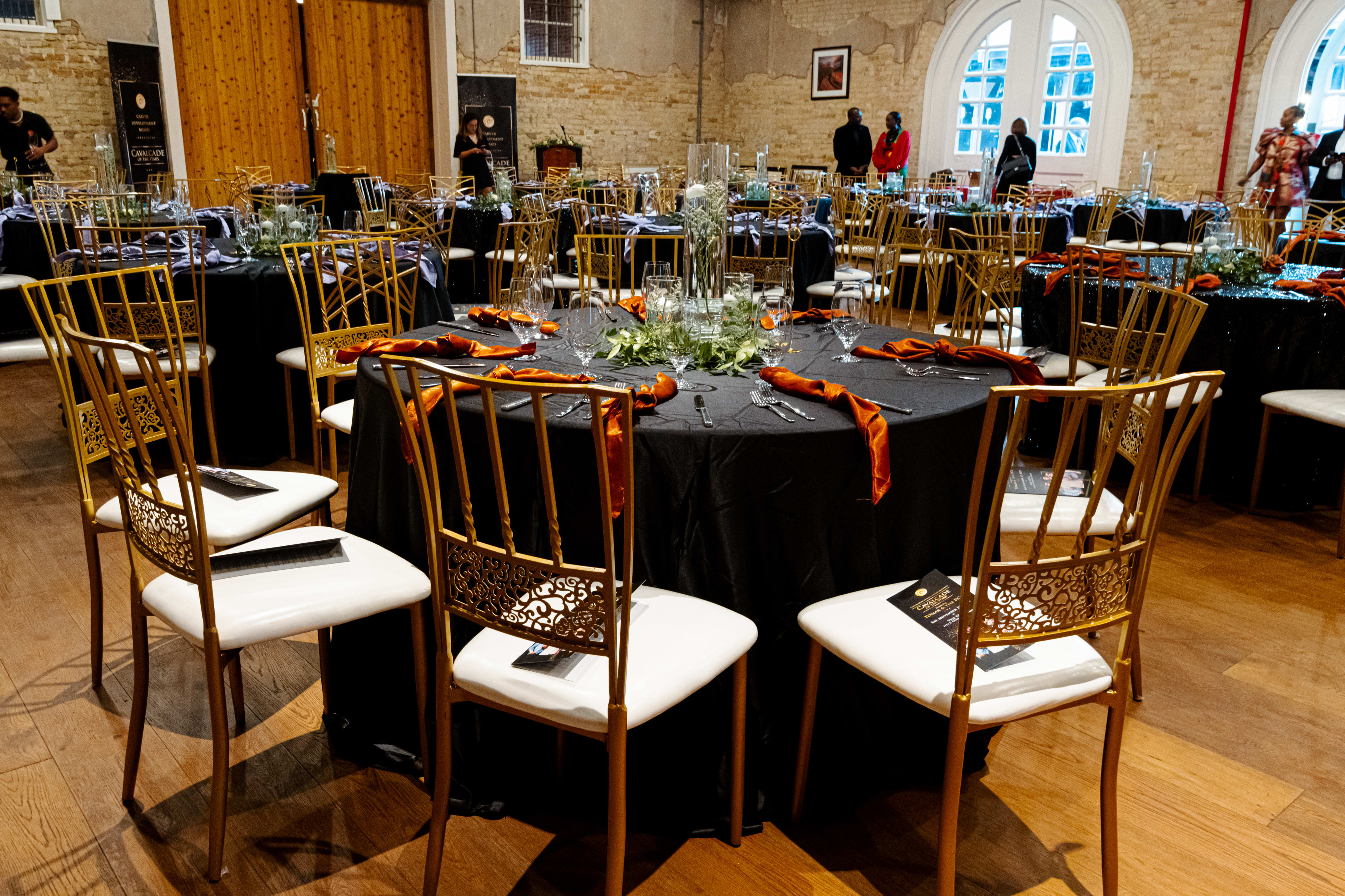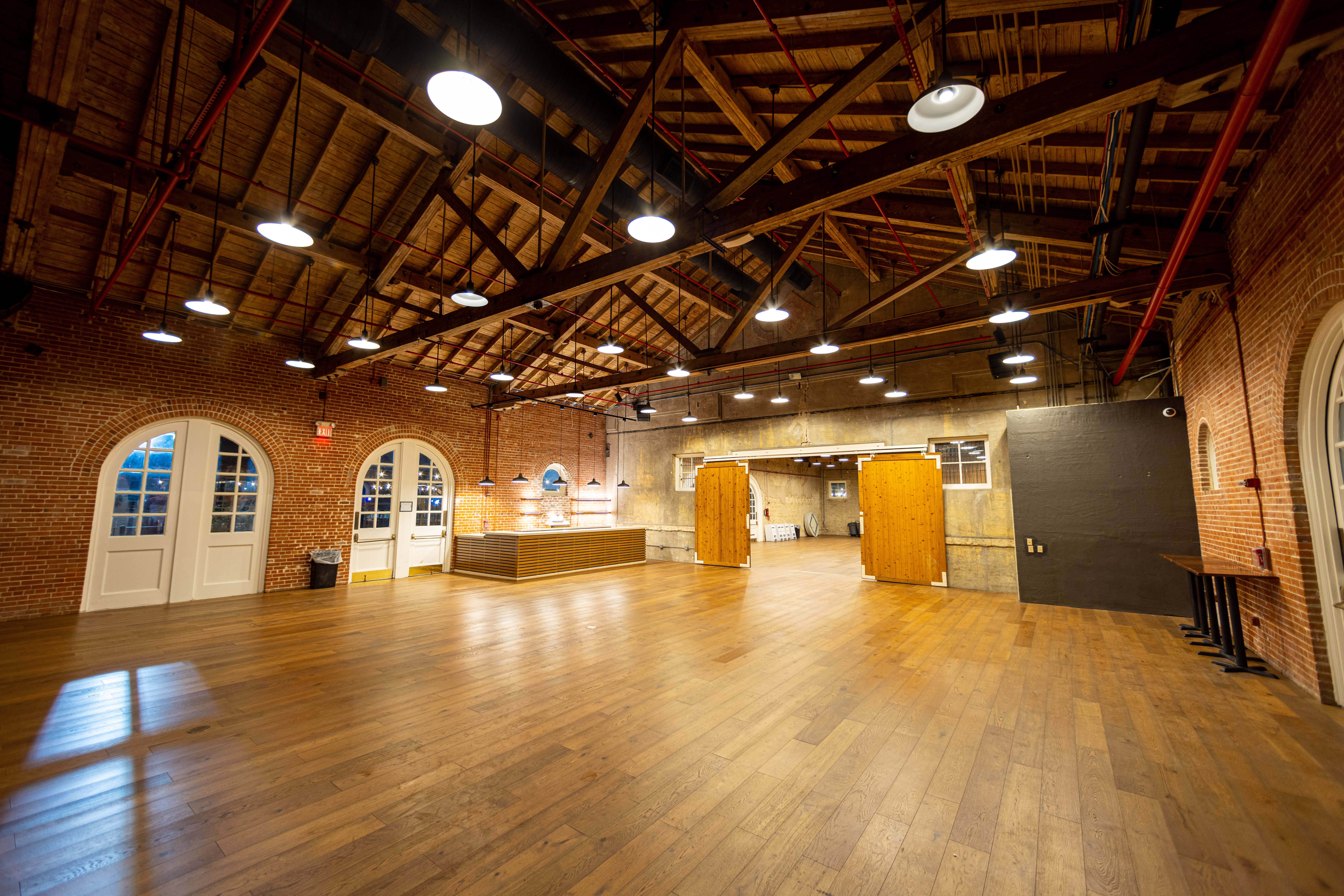 This 3,600 sq. ft. private hall located off the main plaza and water fountain features two fully renovated bars with modern lighting, a private booth for a DJ or MC, and can hold up to 650 guests.